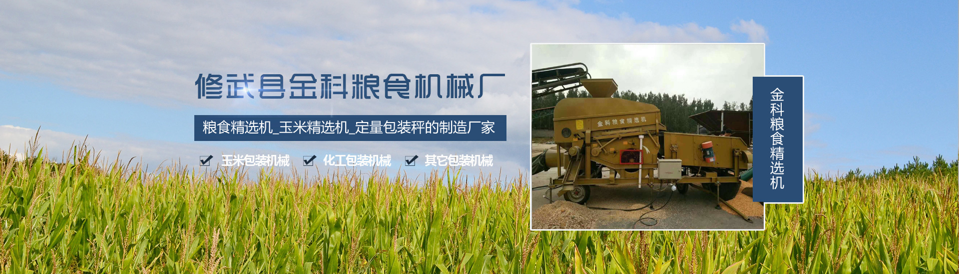 修武縣金科糧食機械廠,研制開發了多種系列糧食精選機,電子秤,包裝秤,分裝機,玉米脫粒機,脫粒機輸送機,皮帶機,除塵器,脈沖除塵器,提升機,絞龍,糧食上料機等糧食機械。,在使用中得到各地用戶的一致好評! 另外專注生產的計量包裝秤,產品主要應用于玉米包裝機械,化工包裝機械,以及其它包裝機械。產品銷往玉米加工廠家,面粉加工廠家,化肥廠家等。
